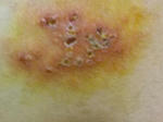 潰したことで周りの肉が面状に腫れあがり、皮がむけた部分がくぼんでいる。